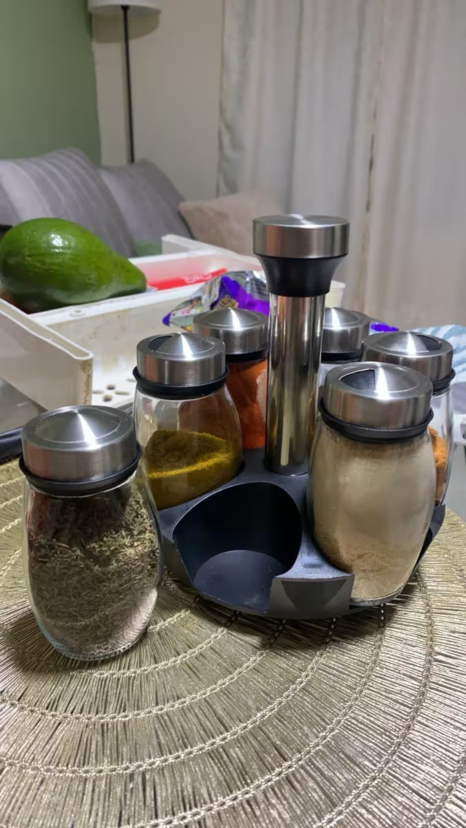 Convierte el desorden en armonía con este elegante condimentero giratorio. Mantén tus especias organizadas, frescas y siempre al alcance mientras disfrutas una cocina más práctica y sofisticada.
